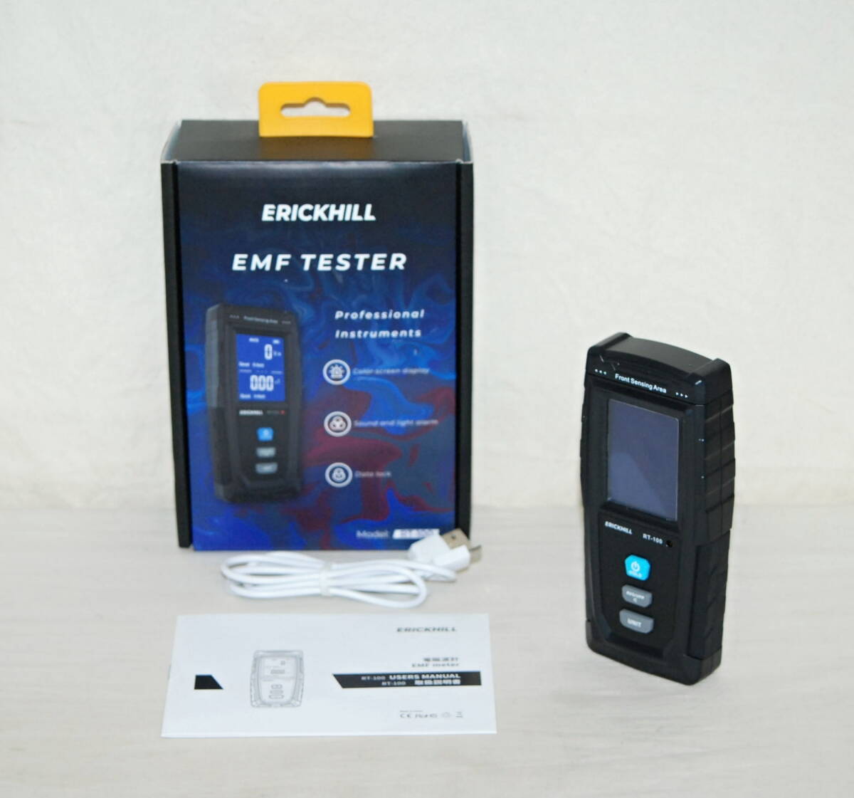 - 美品 ERICKHILL 電磁波計 RT-100 ブラック 電磁波測定器 EMF計 充電式 ハンディ液晶 警報機能付き 在宅検査