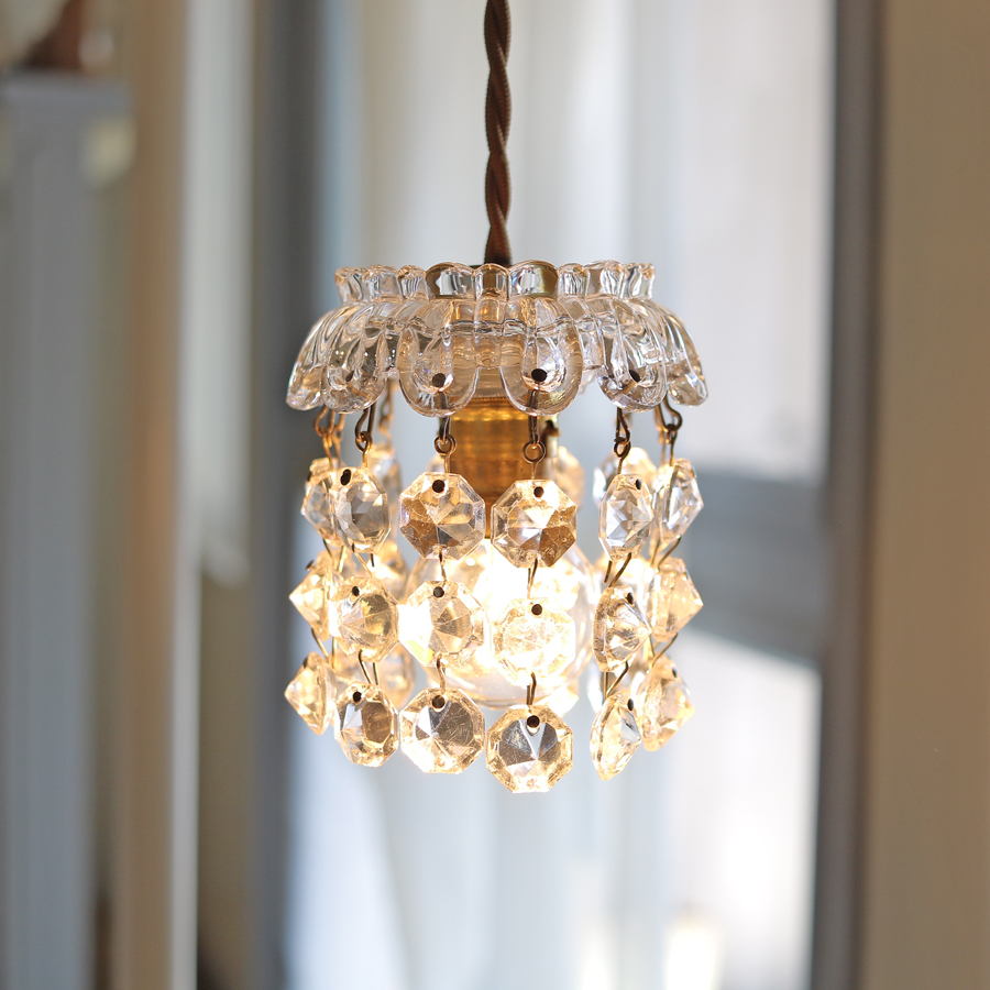 - 『小さなドットのミニシャンデリア』フランスアンティーク ミニシャンデリア クリスタル/オールドバカラ ペンダントランプ 照明 灯具 C*