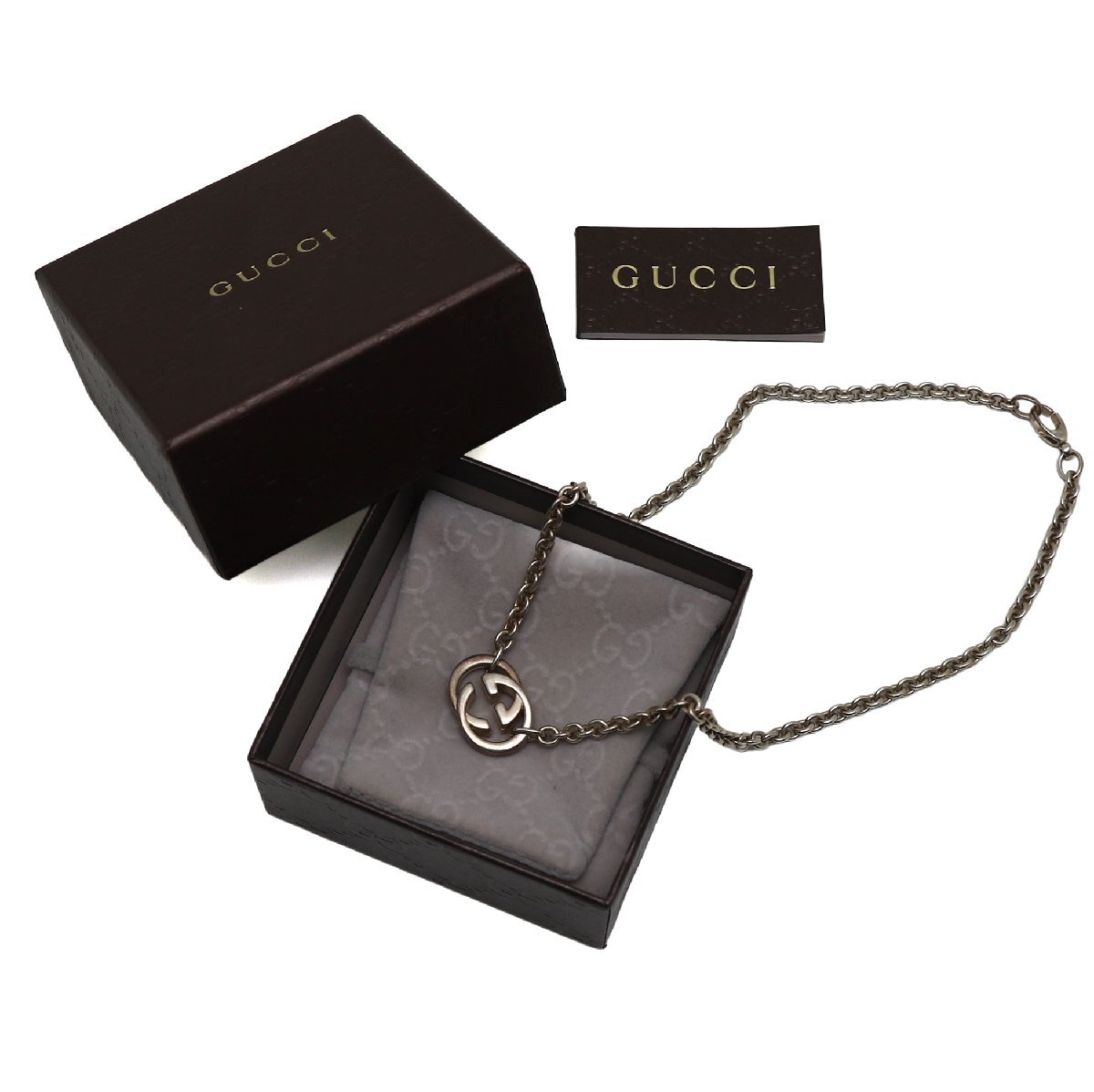 - 中古品 グッチ インターロッキングG ネックレス スターリングシルバー Ag925 ダブルG