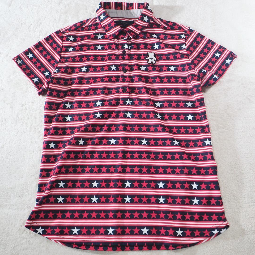 - キャロウェイ Callaway レディース ゴルフシャツ 総柄 ベアロゴ Mサイズ ポロシャツ 半袖