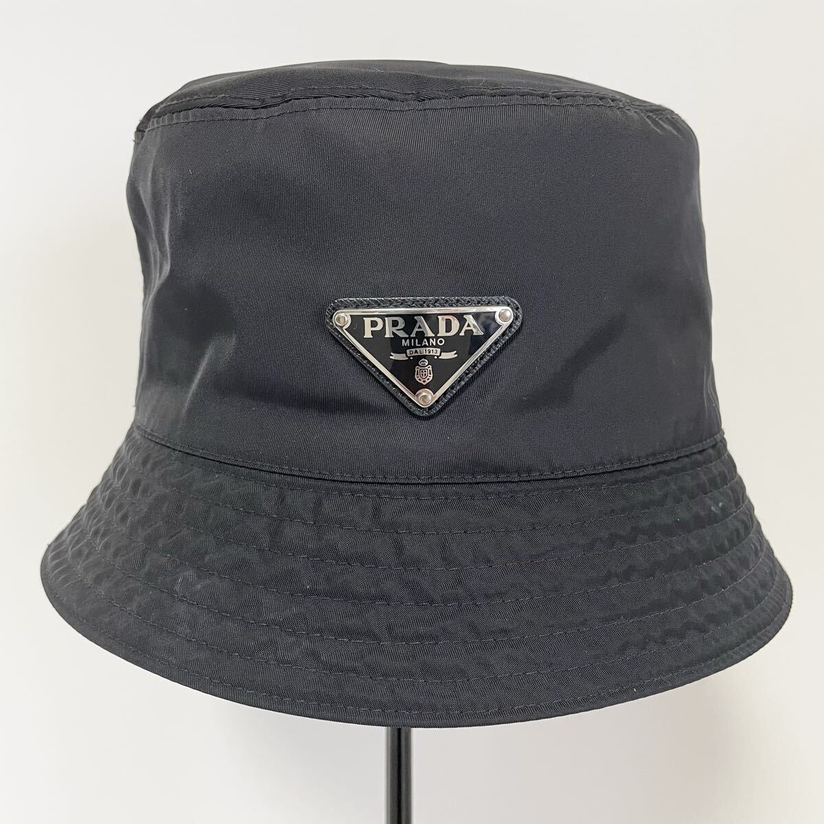 - 即決☆PRADA プラダ バケットハット 帽子 ナイロン 三角ロゴ プレート M バケハ