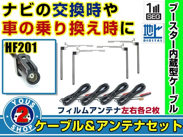 > メール便送料無料 透明フィルムアンテナ左右付き◎ブースター内蔵コード4本 三菱 NR-MZ200 2016年 左右L型 HF201 カーナビ載せ替え