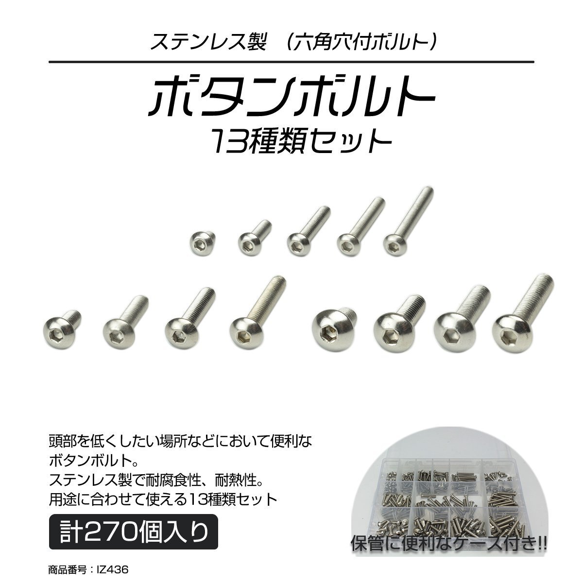 - ステンレス製 M3 M4 M5 ボタンボルト 六角穴ボルト 13種セット 合計270個 ケース入り IZ436