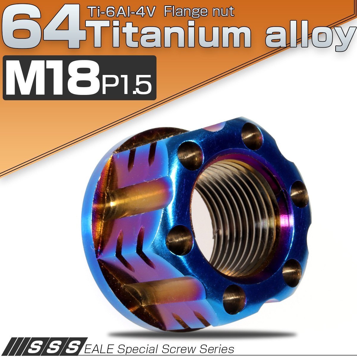 > 64チタン製 M18 P1.5 フランジ付き六角ナット アクスルナット ダークカラー 焼きチタン セレート無し 切削デザイン カスタムナット JA533