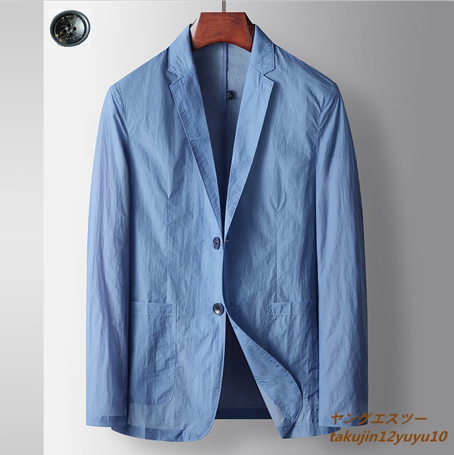 - 春夏新品■メンズ テーラードジャケット 薄手 サマー ブレザー 正規品 ノーベンツ 背広 スーツ 日焼け止め 紳士服 細身 ブルー L