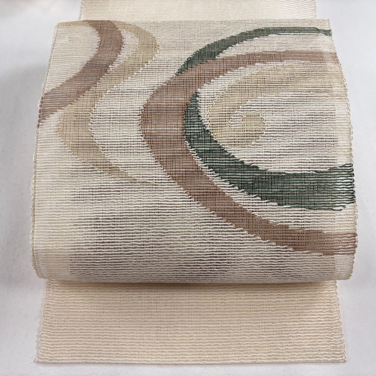 - 名古屋帯 秀品 夏帯 八寸名古屋帯 松葉仕立て 流水 ベージュ 正絹 【中古】