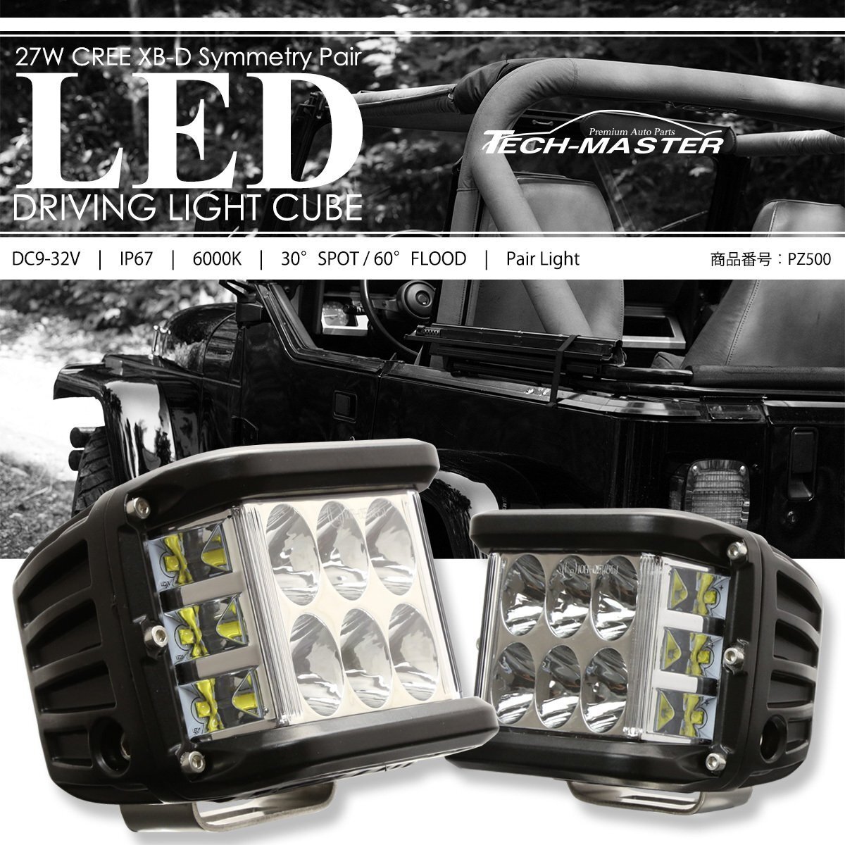 > LED ドライビングランプ 27W LED作業灯 左右非対称2個セット オフロード 4WD車などに DC12V/24V フォグランプ PZ500