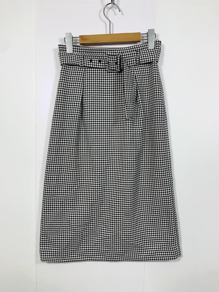 > ゆうパケットOK PROPORTION プロポーション ボディドレッシング 121-0120024 ベルト付き 千鳥柄 タイト スカート size2S/黒×白 ■■