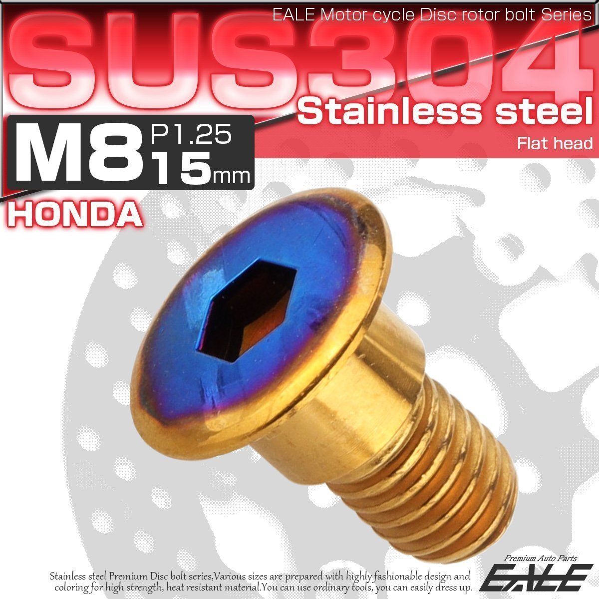 - ホンダ用 ブレーキ ディスク ローター ボルト M8×15mm P=1.25 SUS304 ステンレス フラットヘッド ゴールド/ブルー TD0319