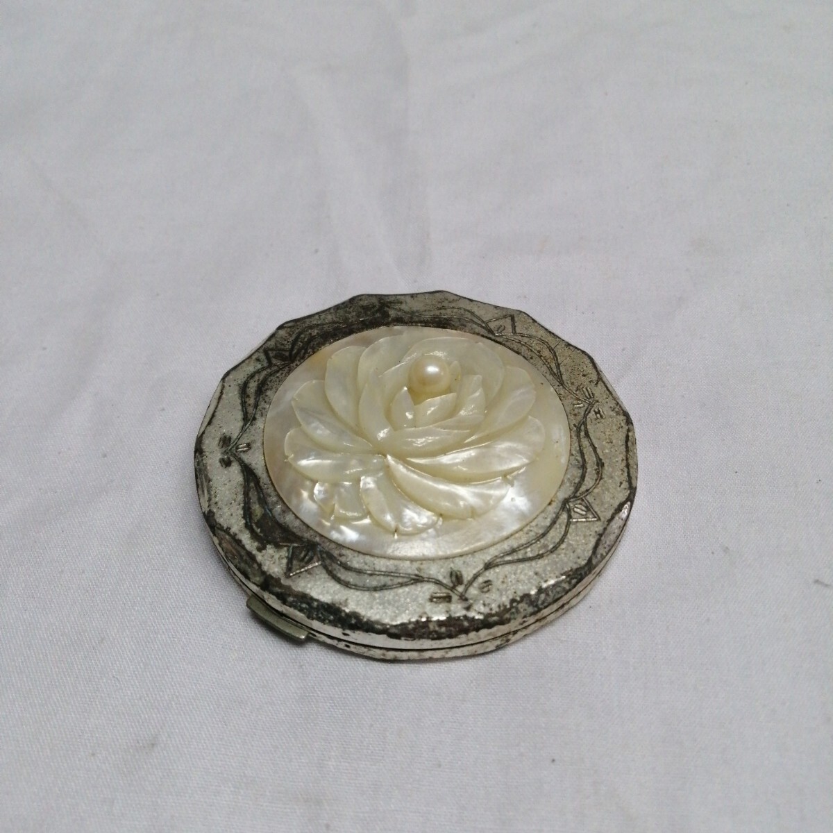 - クラウン社 コンパクトミラー アンティーク レトロ 化粧品 花柄 ヴィンテージ 古びた 当時物 シェル 送料600円可能