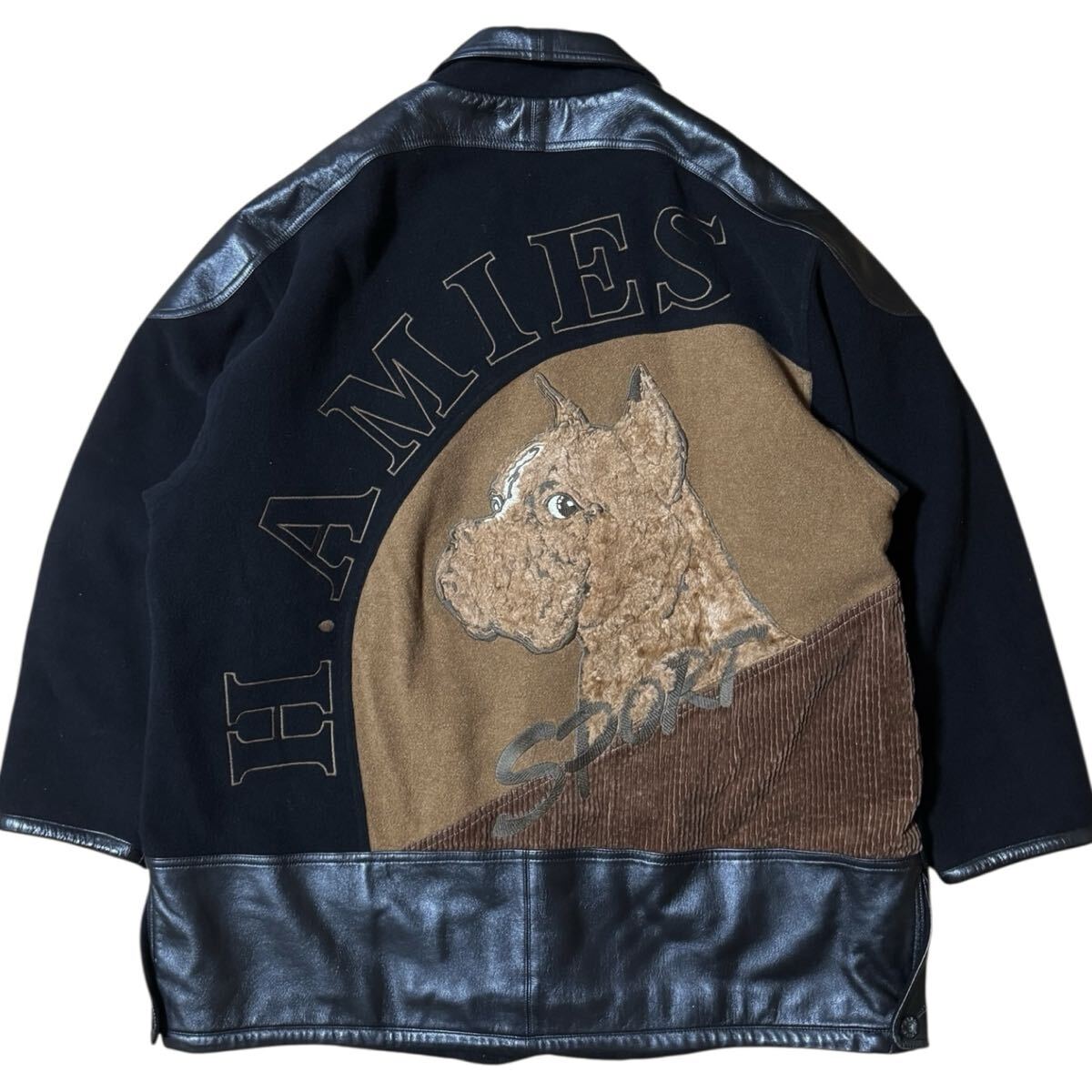 > 稀少 HARDY AIMIES バックロゴ 革襟 スタジャン カシミヤ混 サイズ4 ブラック ビッグサイズ4
