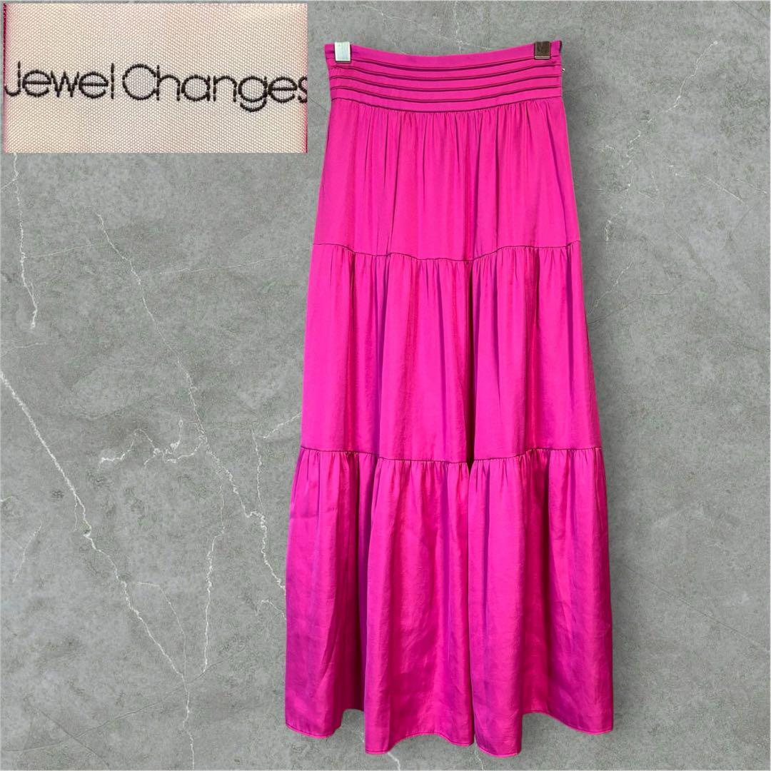 > UNITED ARROWS PE サテンティアードマキシスカート ピンク 36 ボトムス ユナイテッドアローズ レディース スカート ロング