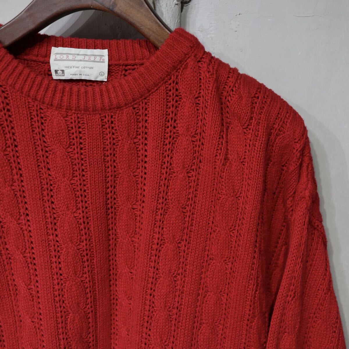 - 【即決】LORD JEFF ロードジェフ ケーブル コットンニット セーター レッド 赤 USA アメリカ製 古着 L