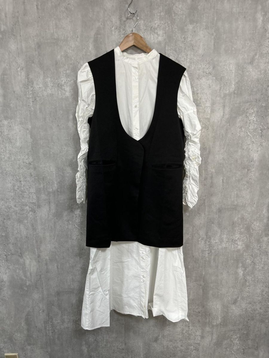 > Ameri VINTAGE アメリヴィンテージ ベスト シャツワンピース セットアップ sizeM/白x黒 ■◇◎ レディース