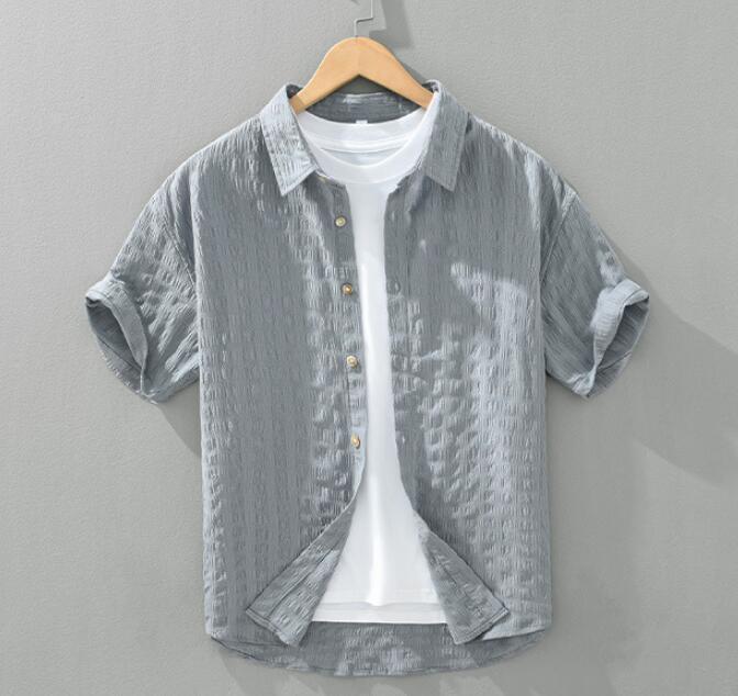 - 半袖シャツ メンズ カジュアルシャツ 薄手 清涼感 サマーシャツ シワ感 アロハシャツ 夏新品 涼しい お洒落 心地良し 紳士服 グレー
