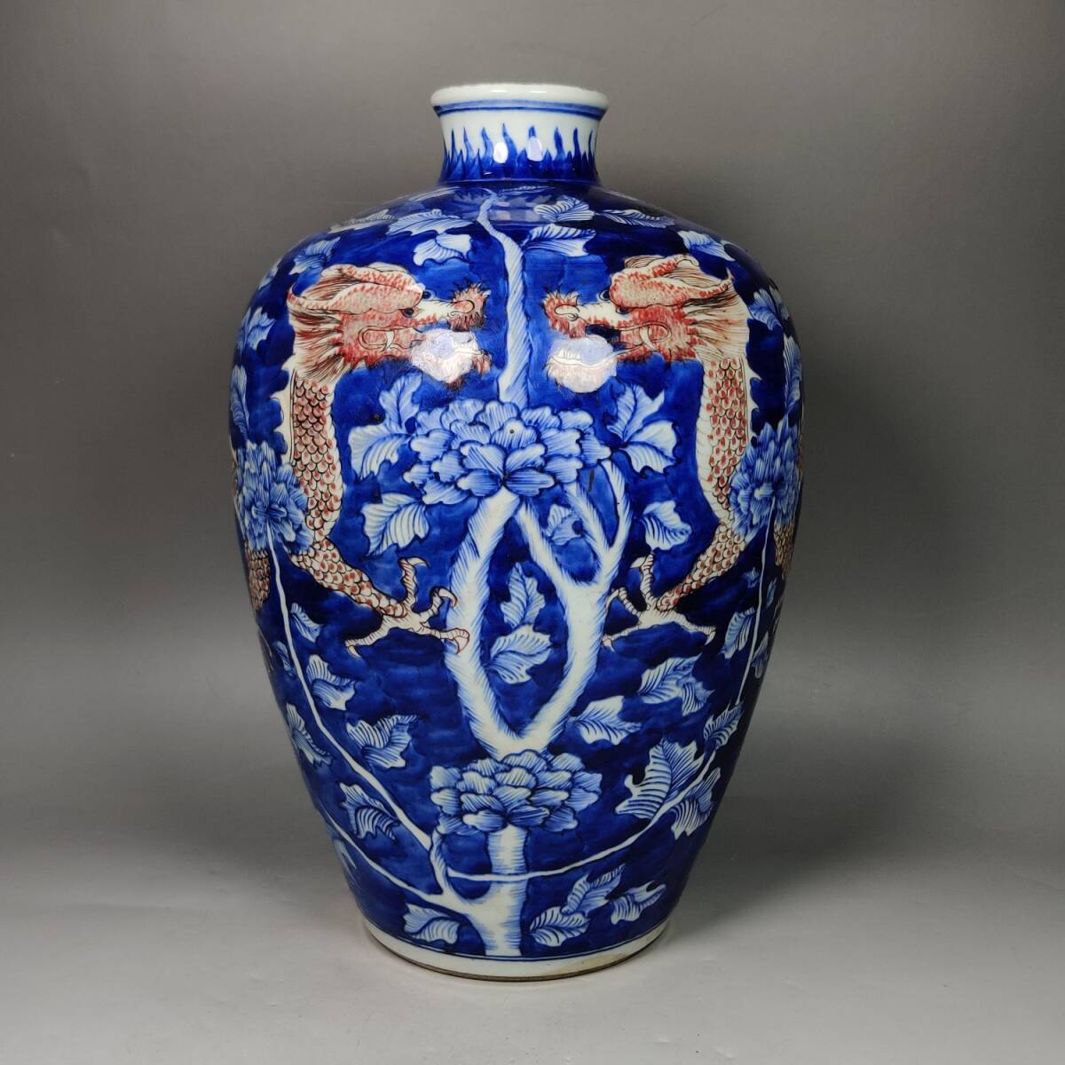 - zz8|8162 中国磁器 陶芸 磁器『清の青花釉裏紅梅瓶です』施釉陶 古代工芸品 陶芸 精美彫 置物 收藏品