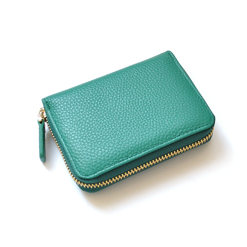 - 【MOMO】牛革蛇腹ミニ財布 ■蛇腹カードポケット仕様レディース小銭入れ グリーン×1個