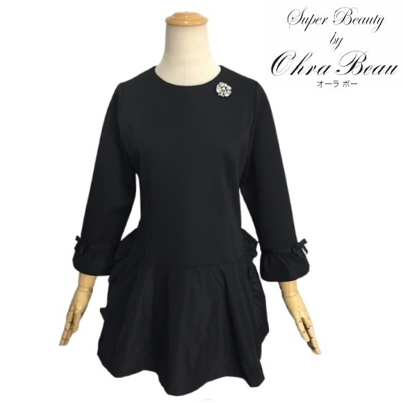 > スーパービューティー 40 チュニック ウェスト切替 フリルデザイン 2512005 ブラック M 2025年春夏 オーラボー Super Beauty 大人かわいい