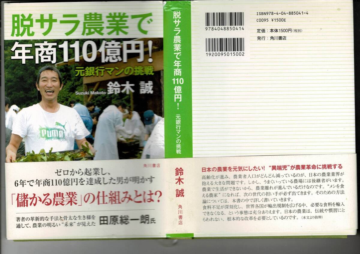 - *「脱サラ農業で年商110億円! 元銀行マンの挑戦」単行本HC 2010 鈴木誠著 角川書店(角川グループパブリッシング) 240ページ RI125NA
