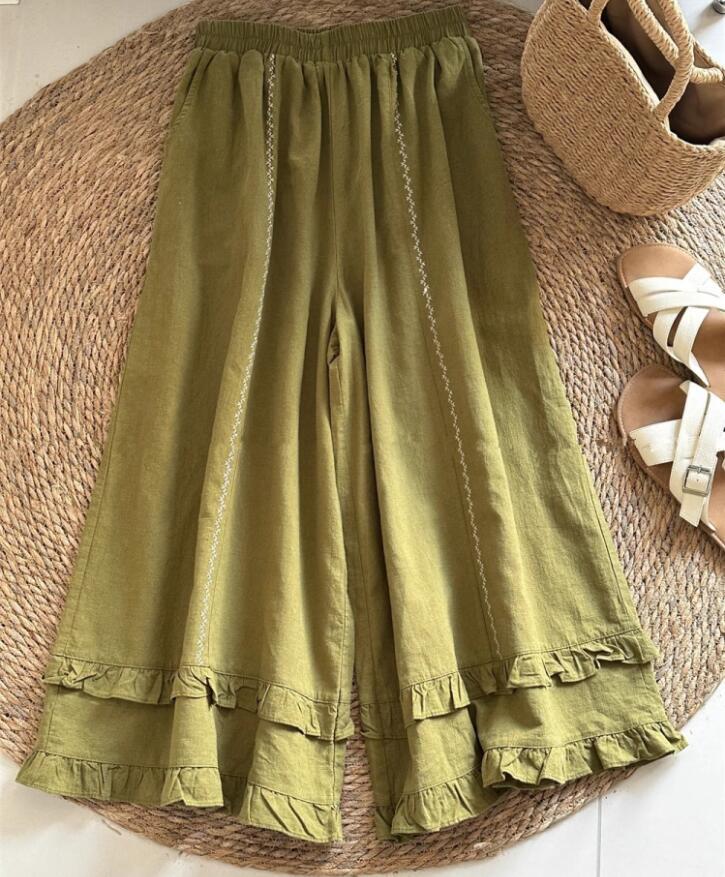 > 新入荷* ワイド パンツ レディース きれいめ ワイドパンツ 大きいサイズ ガウチョパンツ ウェストゴム カジュアル風 お洒落* グリーン
