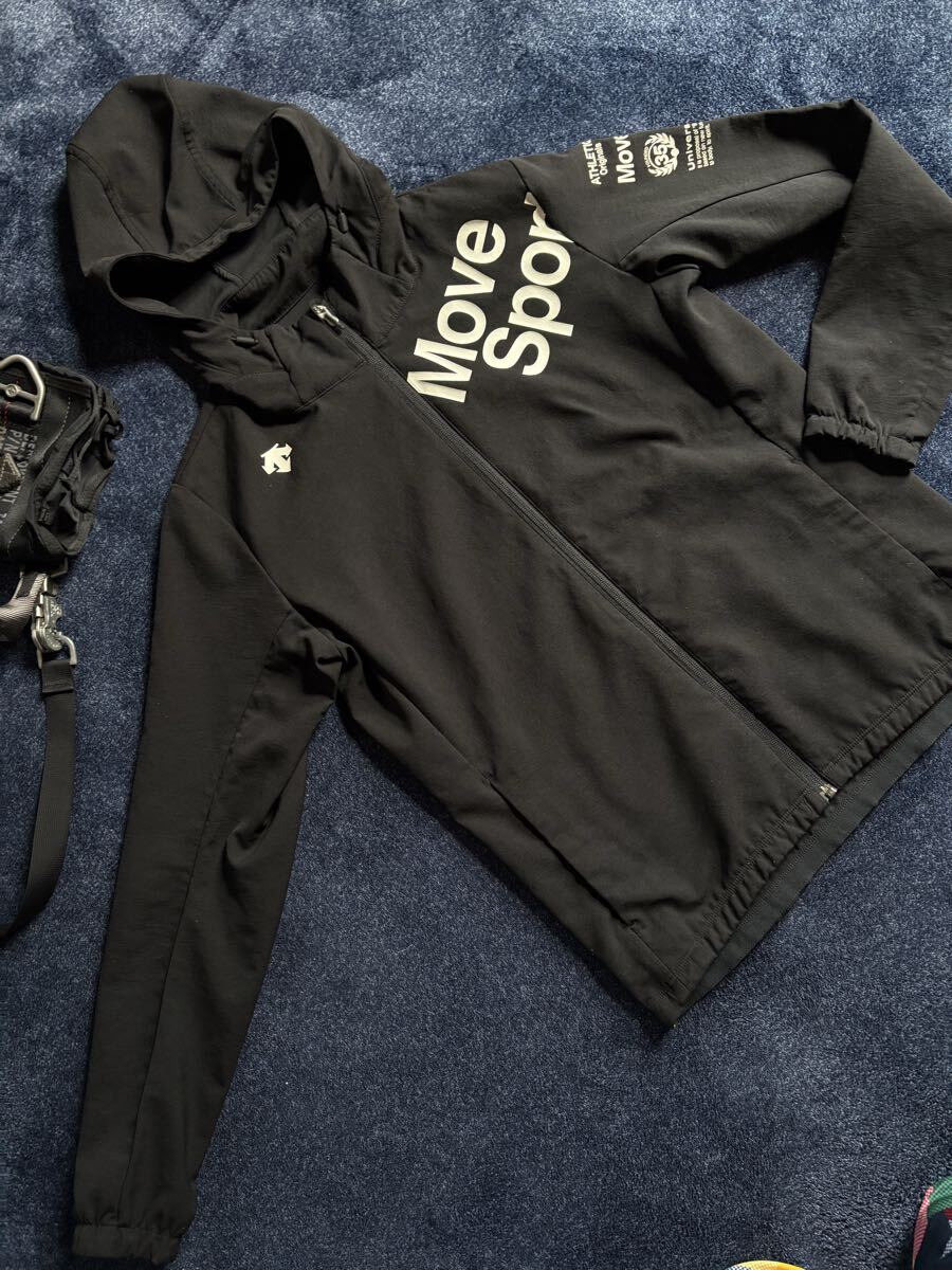 > 超美品 定価10,890円 新品同様 DESCENTE デサント MOVE SPORT サンスクリーン クロスフーデッド ジャケット sizeL ブラック系 DMMNJF16