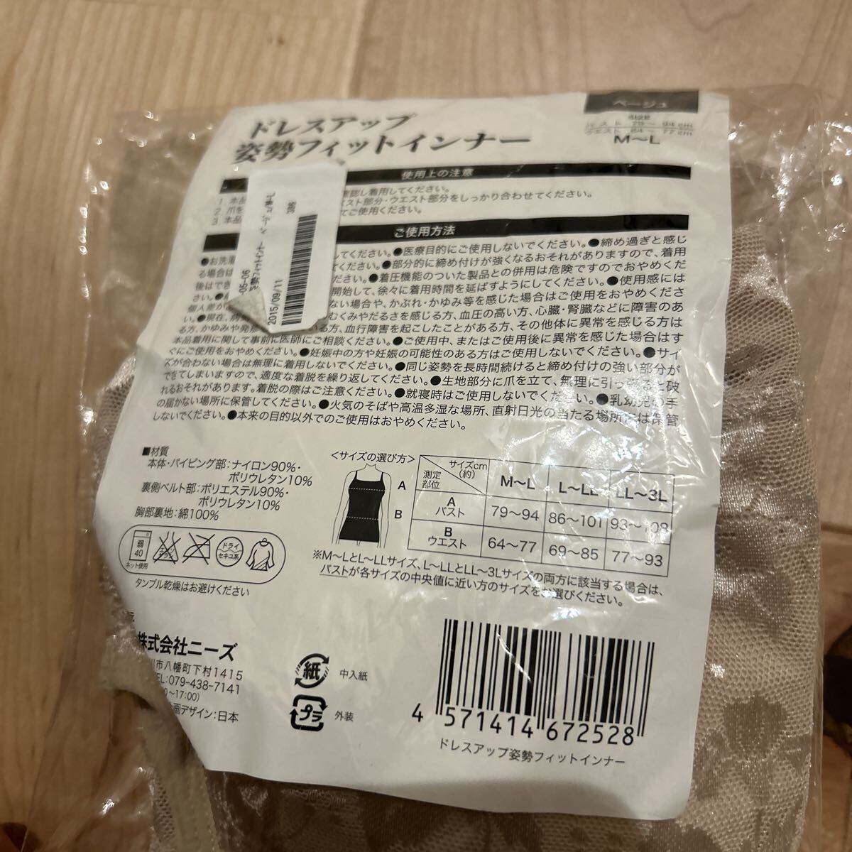 - ドレスアップ姿勢フィットインナー ベージュ M-L ブラカップ付き ベージュ