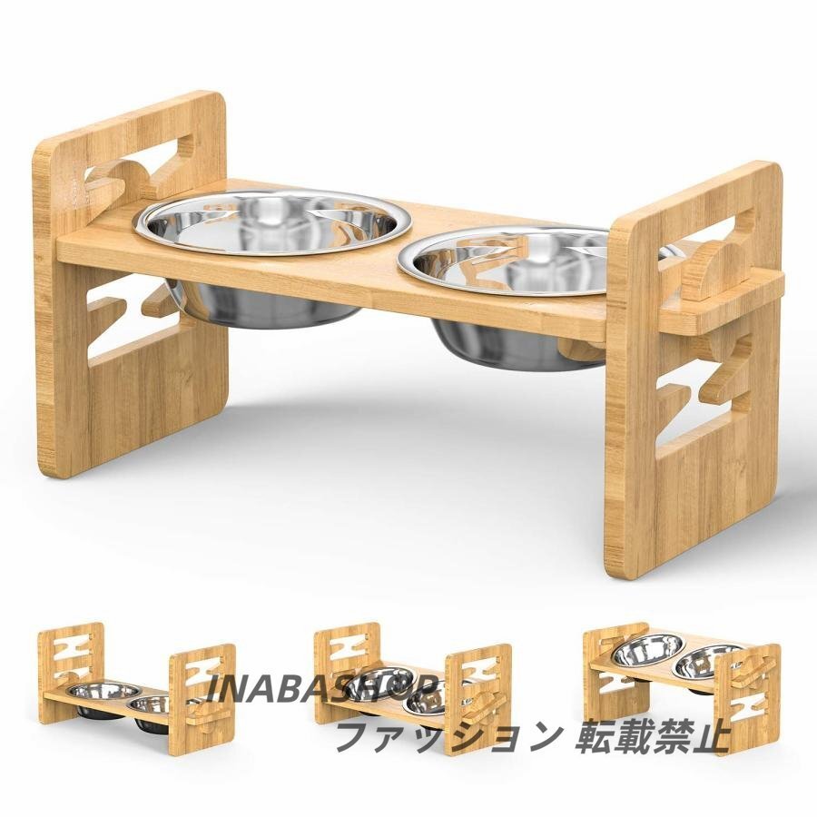 - ペットボウルスタンド 食器台 犬 猫 ごはん皿 木製 4段階の高さ調節可能 滑り止め 水 餌入れ えさいれ