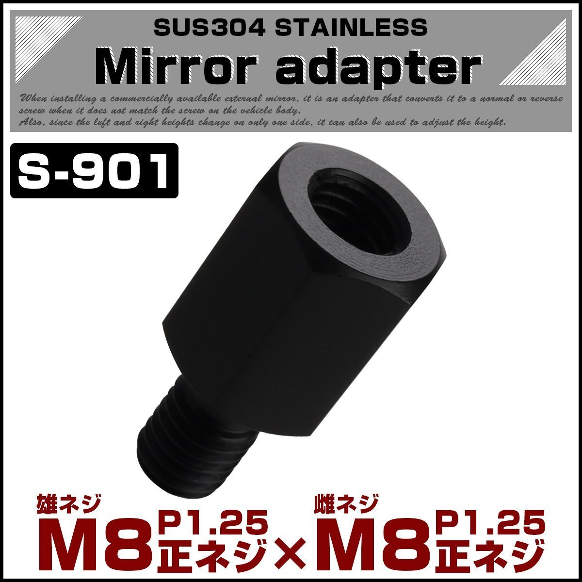 - バイク ミラー変換アダプター 車体側 M8正ネジ / ミラー側 M8正ネジ P1.25 17mm高 ブラック SUS304 ステンレス製 S-901