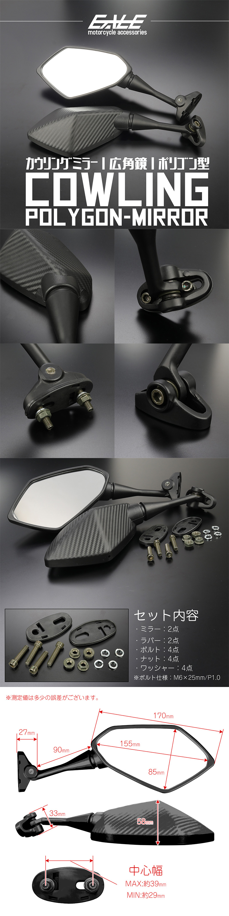 - カウリングミラー 広角鏡 多角形 カウルミラー ポリゴン カーボン柄 左右セット S-1154