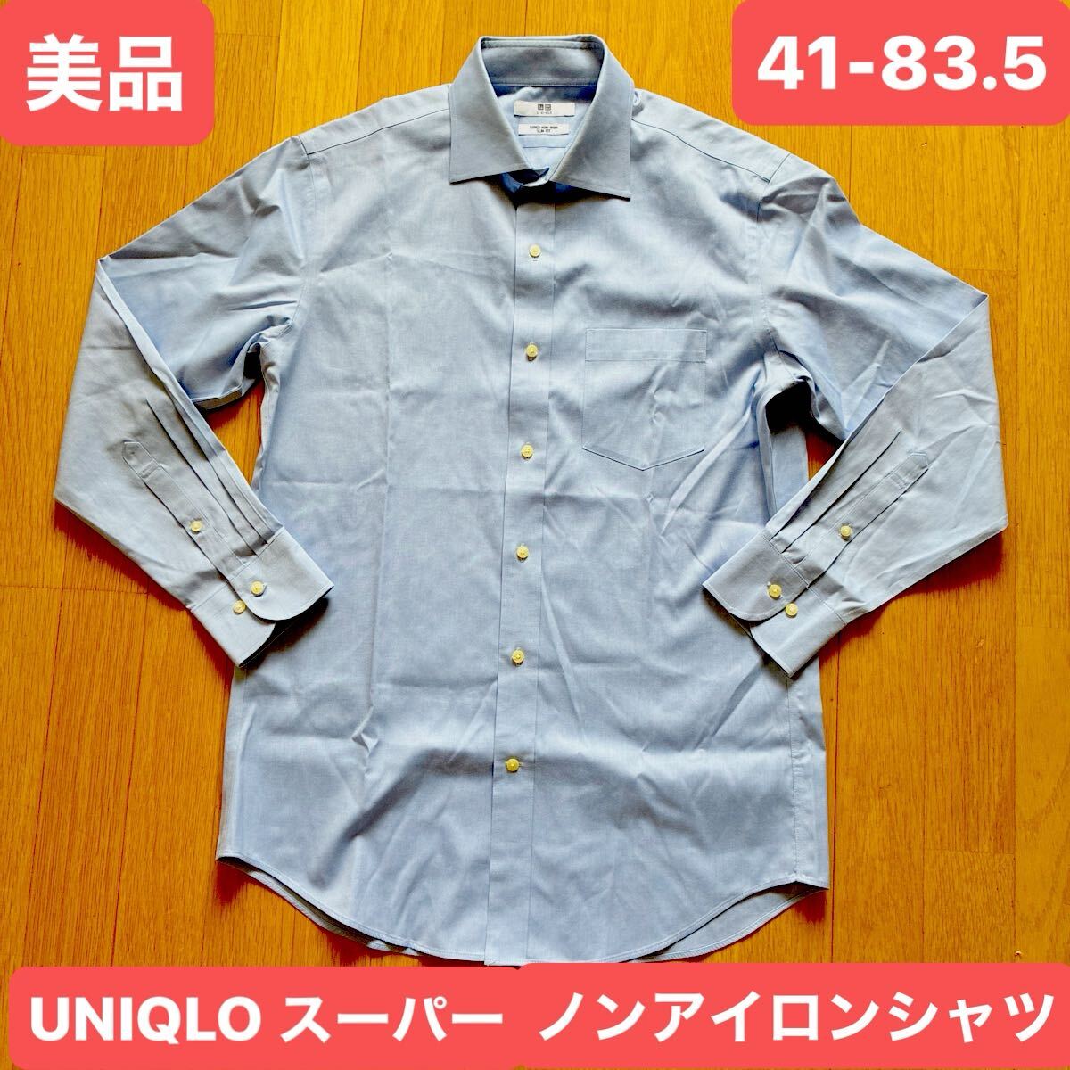 - 美品 ユニクロ UNIQLO スーパーノンアイロン スリムフィット ブルー シャツ サイズL 41-83.5