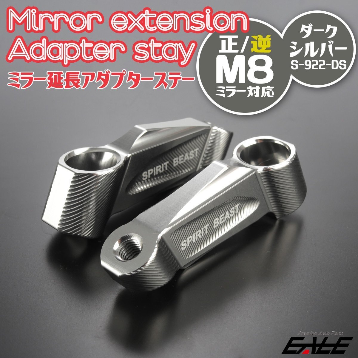 - 汎用 ミラー 延長アダプター M8正ネジ/M8逆ネジ ダークシルバー アルマイト 左右セット T6アルミニウム削り出し S-922-DS