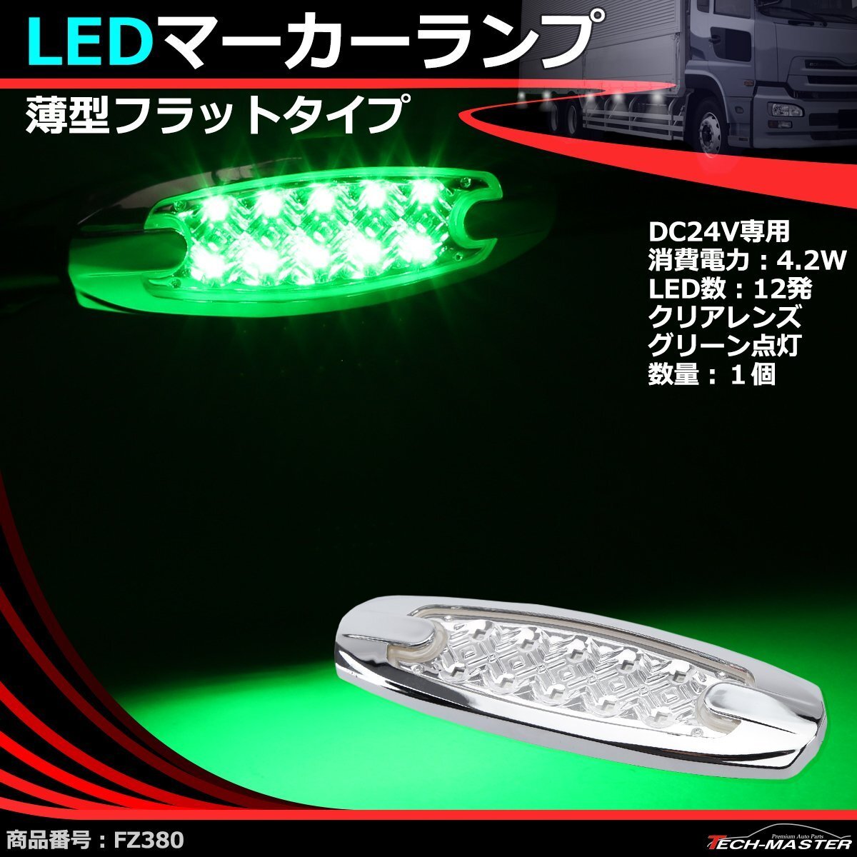 > LEDマーカーランプ 薄型 スリム 24V 汎用 LED12発 クリアーレンズ グリーン点灯 トラック サイドマーカー FZ380