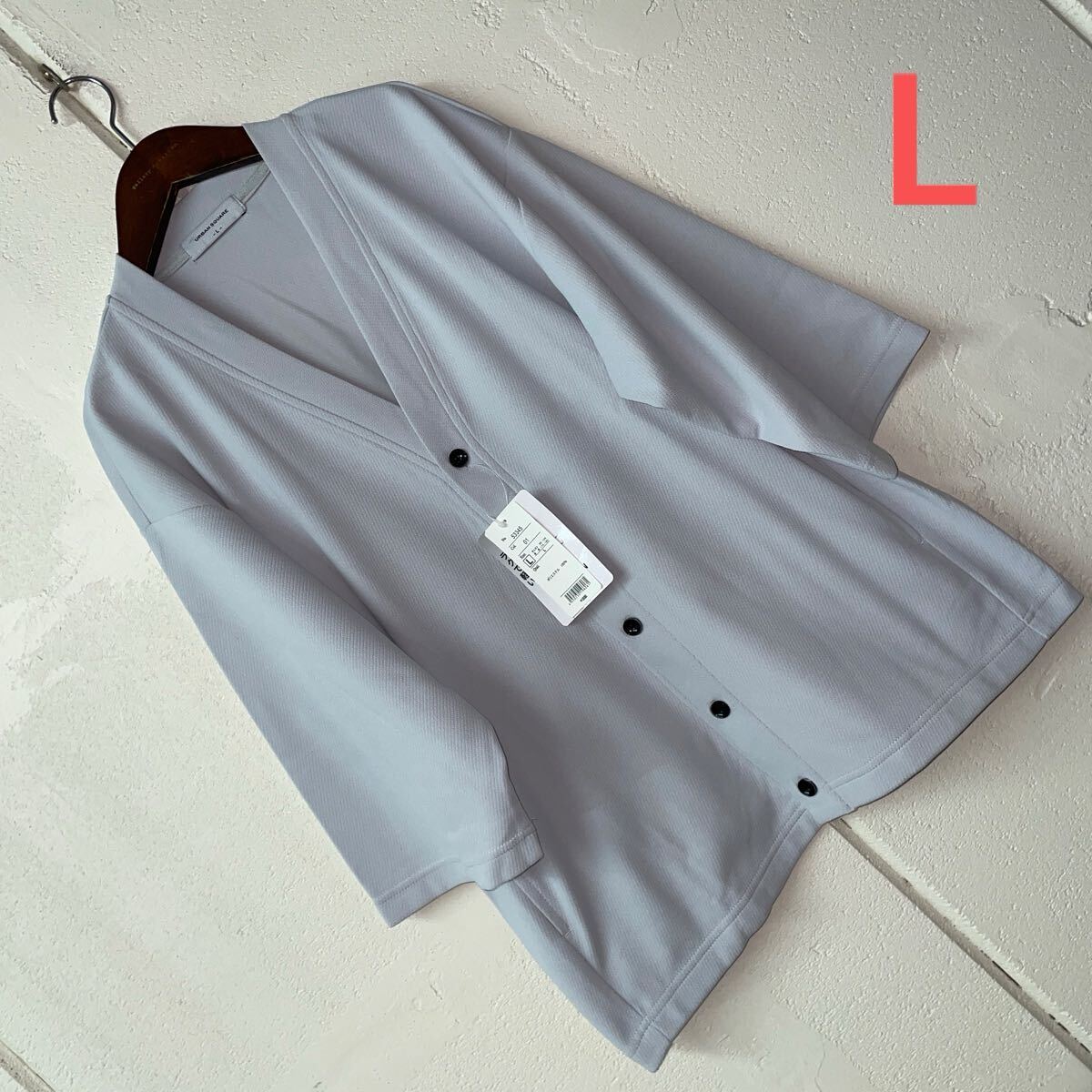 - Lサイズメンズ七分袖カーディガン ライトグレー