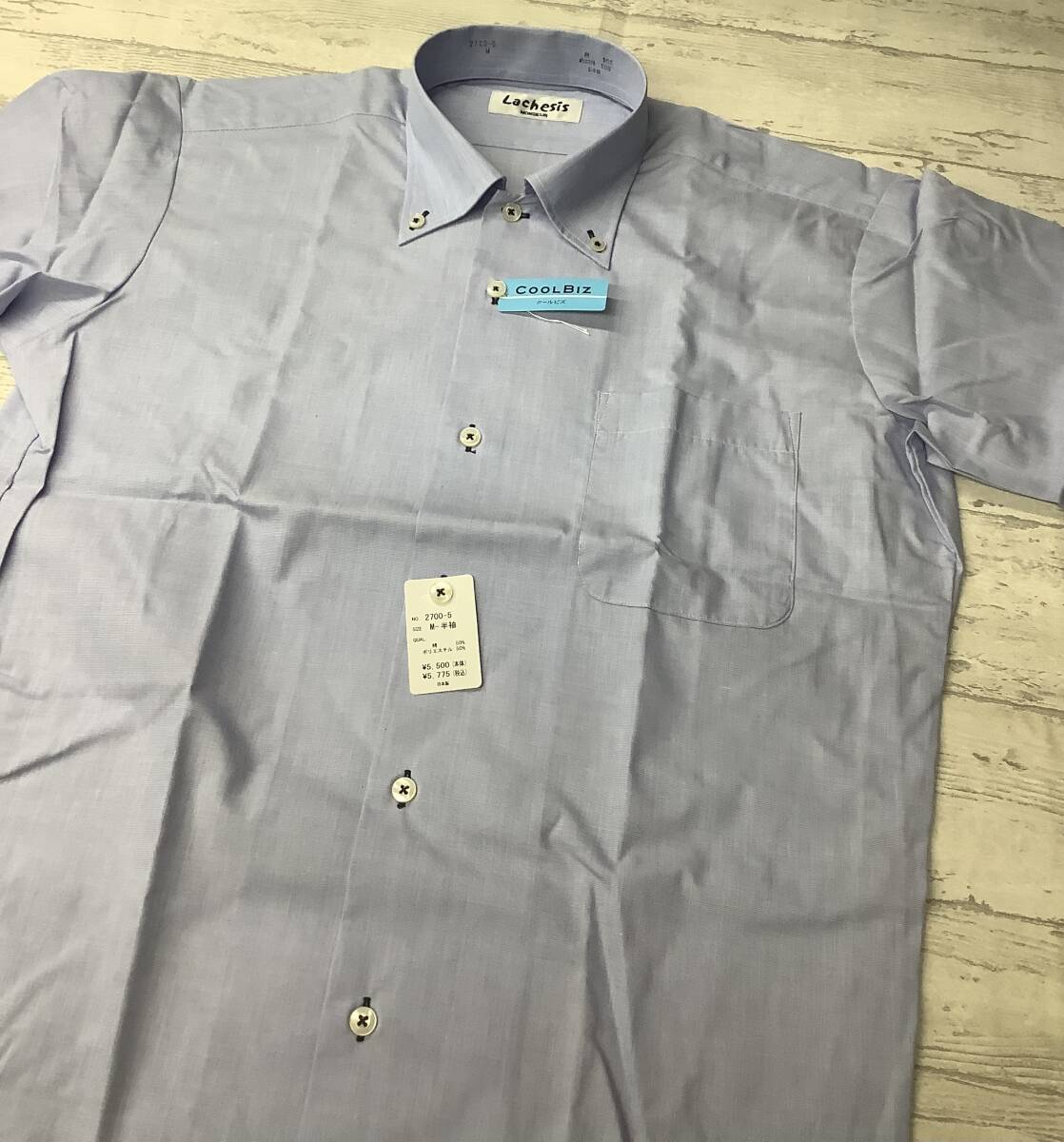 - 訳あり 新品未使用 39Mサイズ半袖 定価5,500円+税 ★ボタンダウン カッターシャツ ストレッチ素材 ★ ブルー系