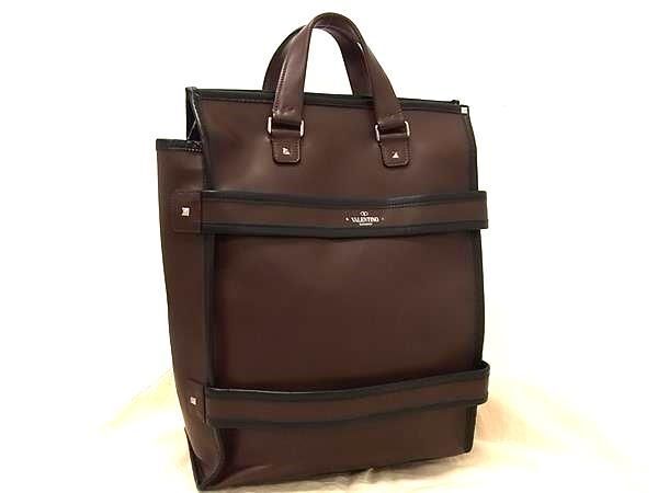 - ヴァレンティノガラヴァーニ バッグ ロックスタッズ トートバッグ レザー - ポーチ付き ブラウン系【本物保証】