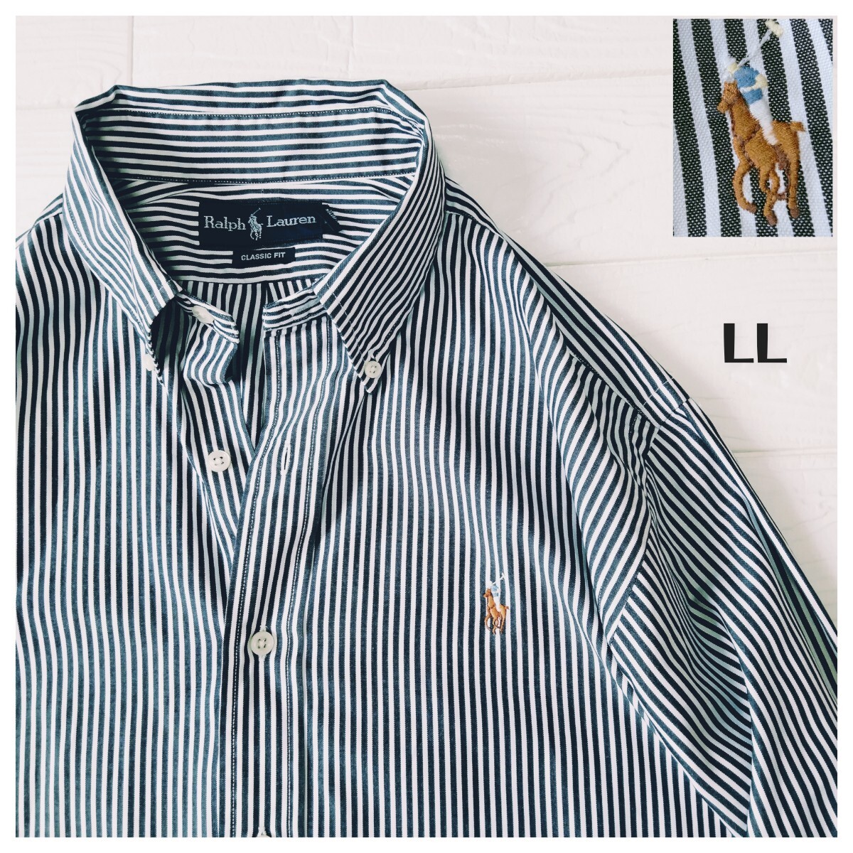 - POLO RALPH LAUREN ポロ ラルフローレン CLASSIC FIT*長袖ストライプシャツ*メンズLL*大きいサイズ*多色ポニー*ボタンダウン*90s