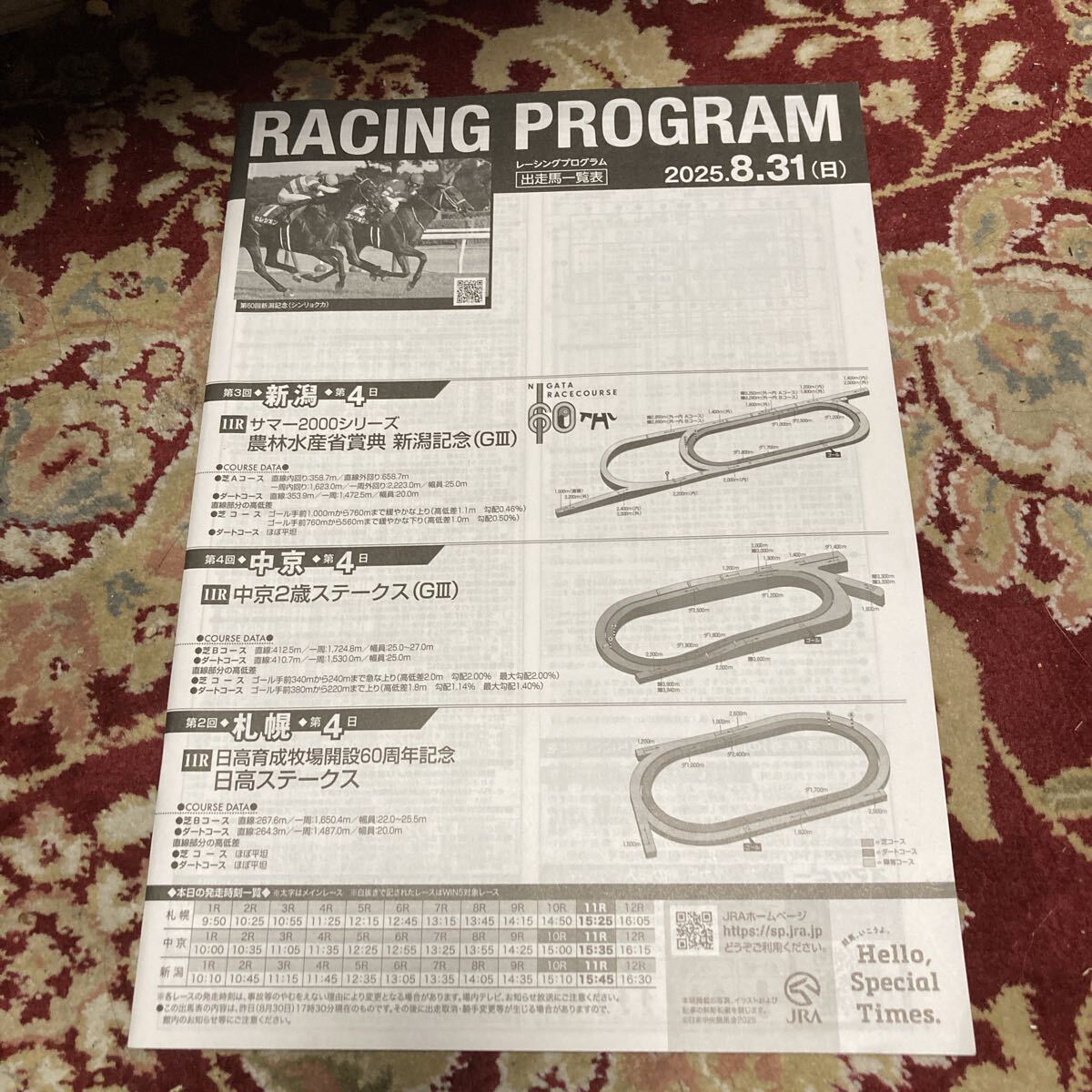 - JRAレーシングプログラム2025.8.31(日)新潟記念(GⅢ)、中京2歳ステークス(GⅢ)、日高ステークス