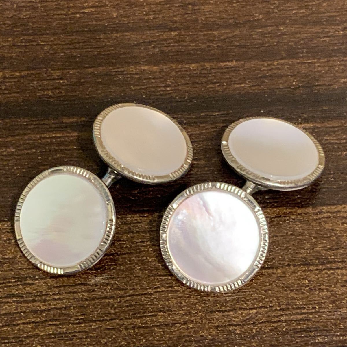 - 送料無料 US ヴィンテージ カフスボタン カフリンクス 白蝶貝 シルバートーン