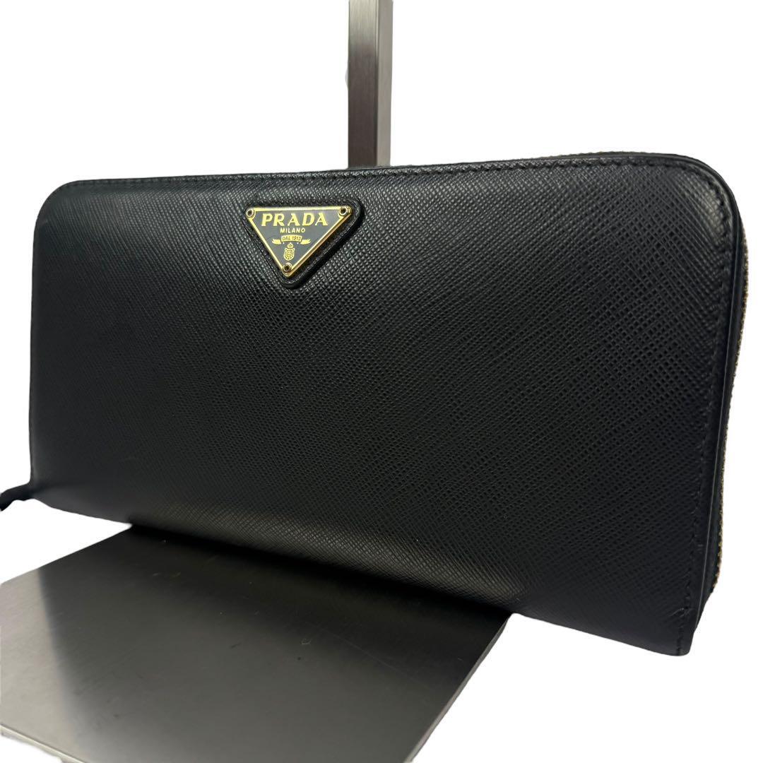 - 【現行モデル 1ML506】PRADA プラダ 長財布 ロングウォレット ラウンドジップ サフィアーノ レザー ゴールド 三角ロゴプレート ブラック 黒