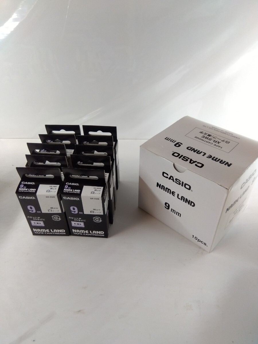 - 未使用品 CASIO NAME LAND 9mm 白テープ/黒文字 XR-9WE 10個セット ネームランドテープ