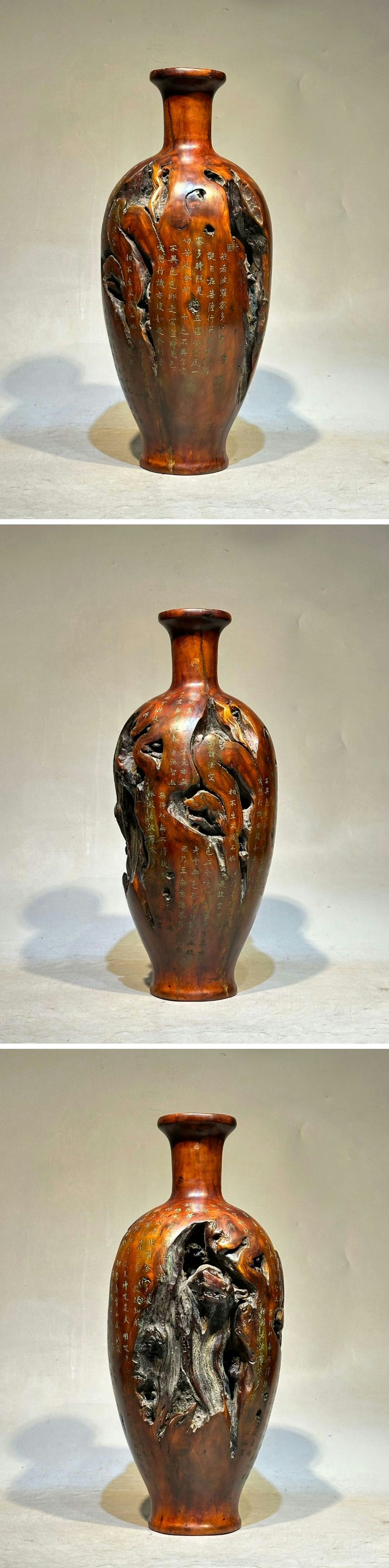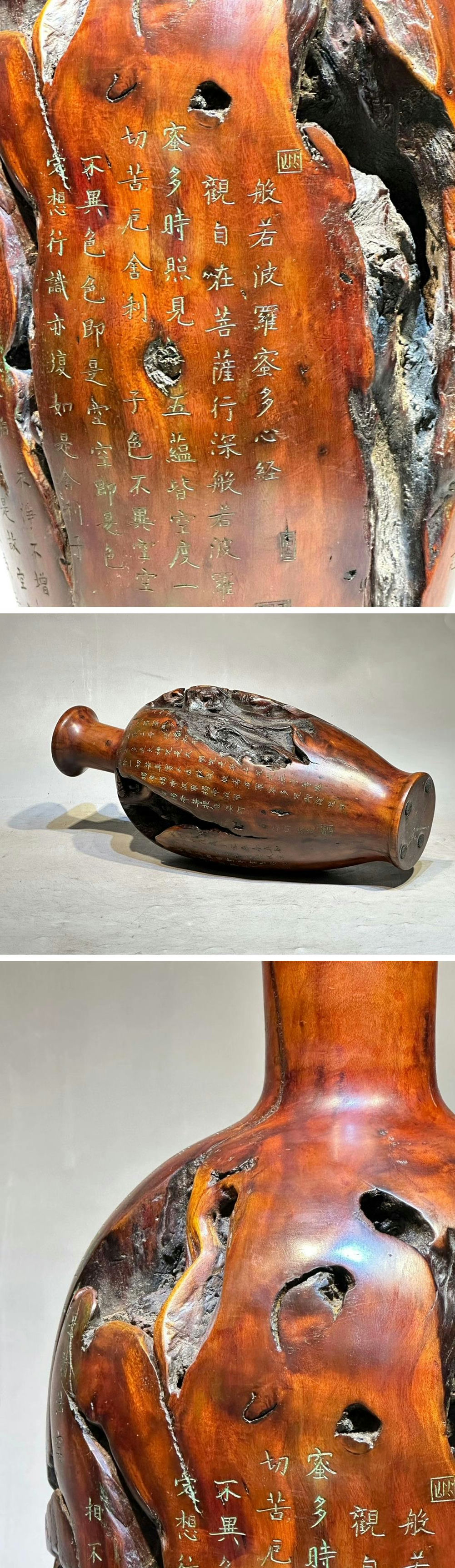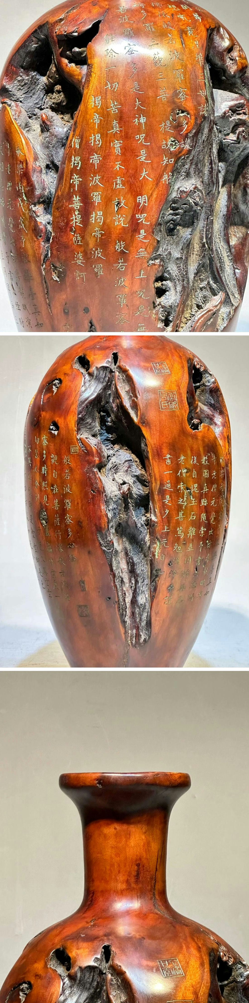 - ■観心・時代旧蔵■K0822清時代 黄花梨花瓶 仏経細密彫 黄花梨木細密細工★古置物★古賞物★古擺件★蒐集家放出★唐物