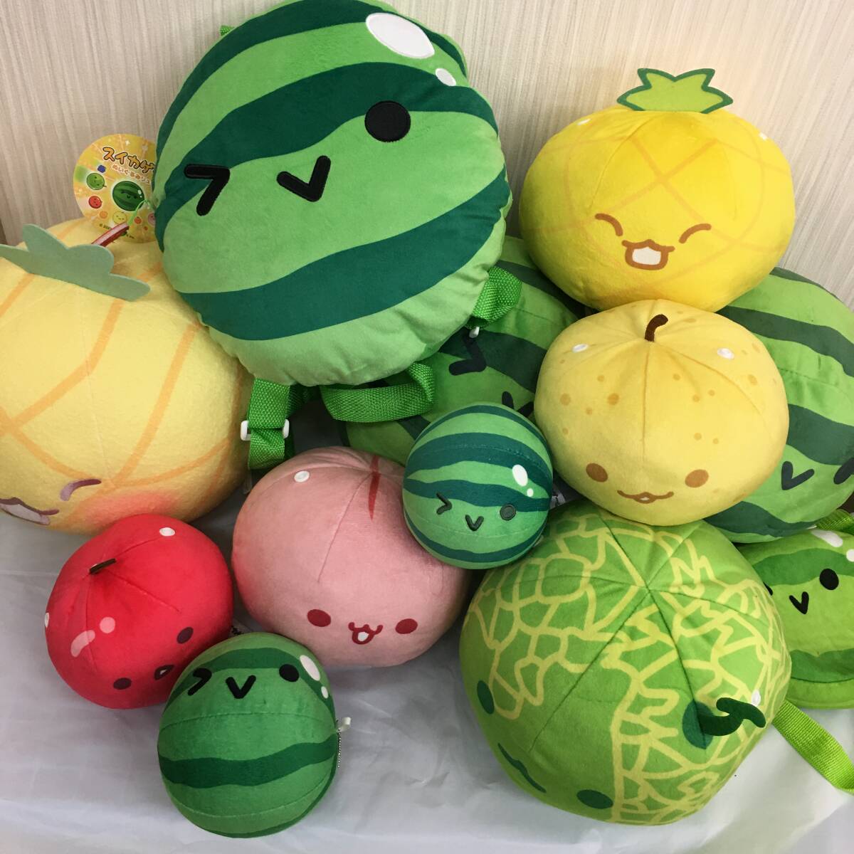 - スイカゲーム ぬいぐるみ・リュックサック・ポーチまとめ 12点/スイカ パイナップル メロン もも りんご 被り有