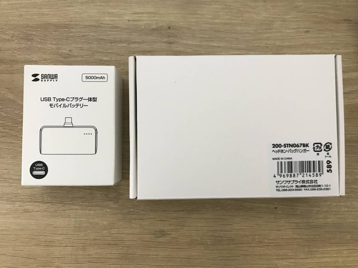 > 【新品未使用】 サンワサプライ モバイルバッテリー & ヘッドホン・バッグハンガー 700-BTL056W 200-STN067BK Type-C
