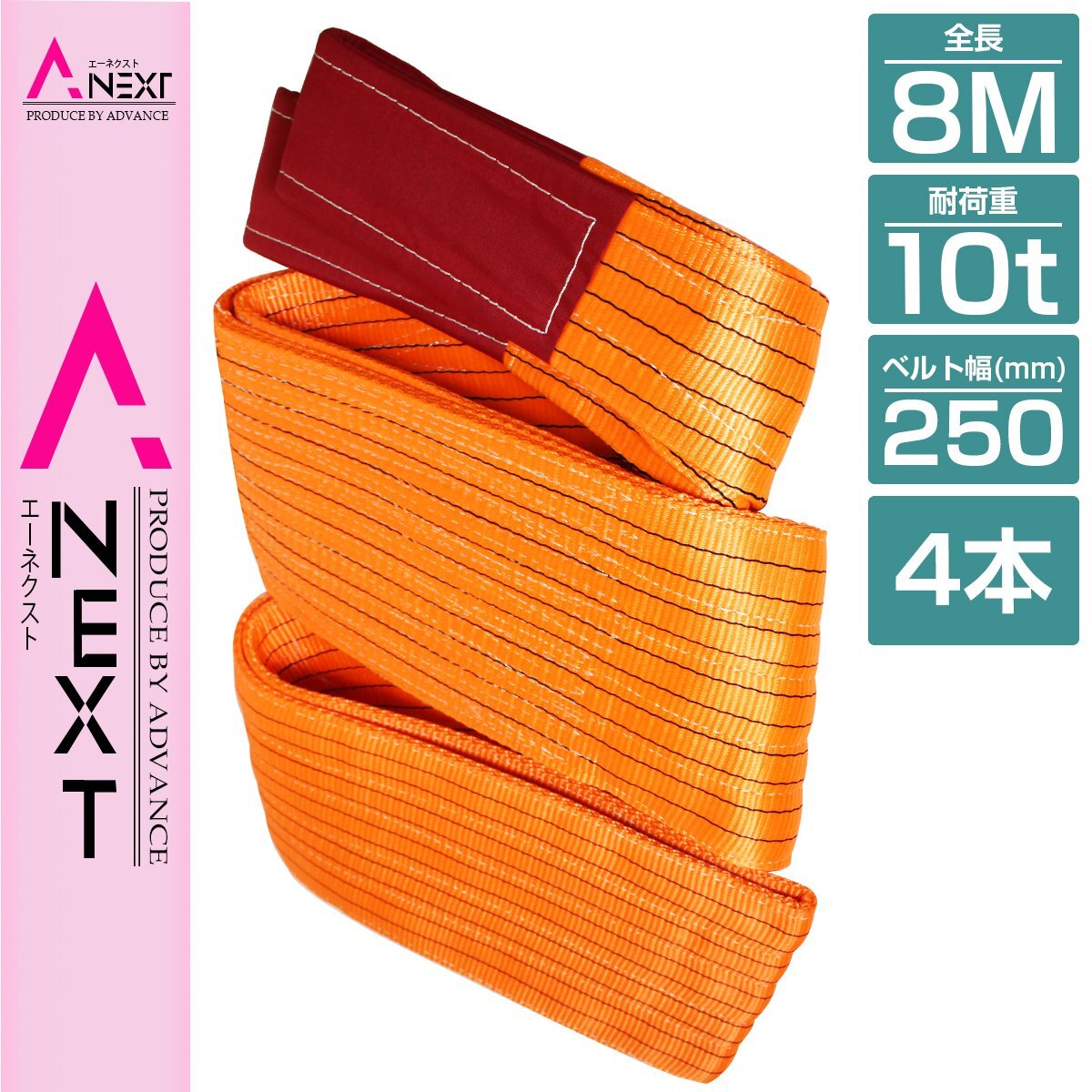 > [4本 セット/耐荷10t/長さ 8m] スリング ベルト 吊上げ ナイロン クレーン ロープ 荷吊り 玉掛け 牽引 運搬 10トン 幅250mm