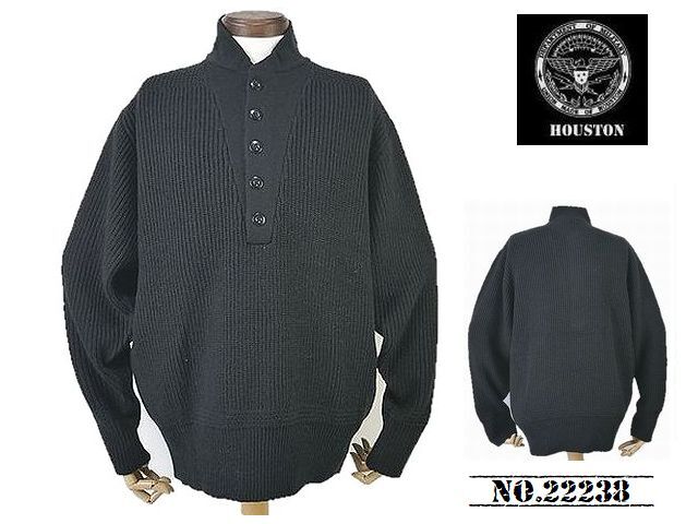 > 【送料無料 38%OFF】HOUSTON ヒューストン US ARMY タンクセーター ・ ヘンリーネック ニット NO22238 BLACK_Lサイズ
