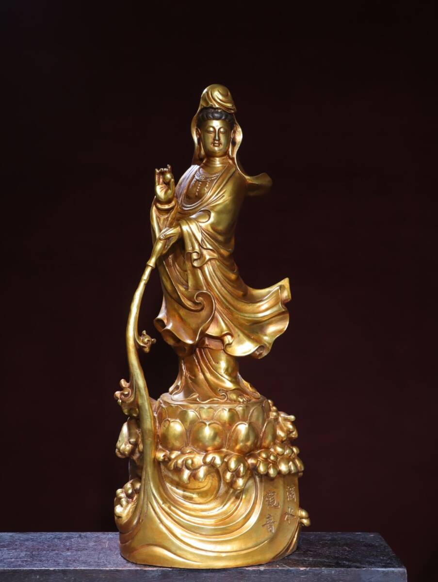 > 精品収蔵 古銅塗金 觀音 仏像 造像 佛 仏教 宗教密教 供奉擺件 家蔵珍品 時代物 古董品 骨董 旧家蔵出し 唐物 中国古玩 古美術品