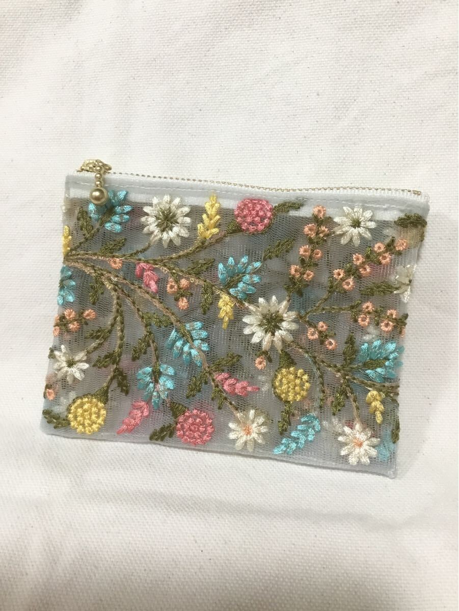 - ☆ ハンドメイド インド刺繍リボンポーチ ミニ財布 ミニポーチ 化粧ポーチ コスメポーチ 小物入れ 手作り☆