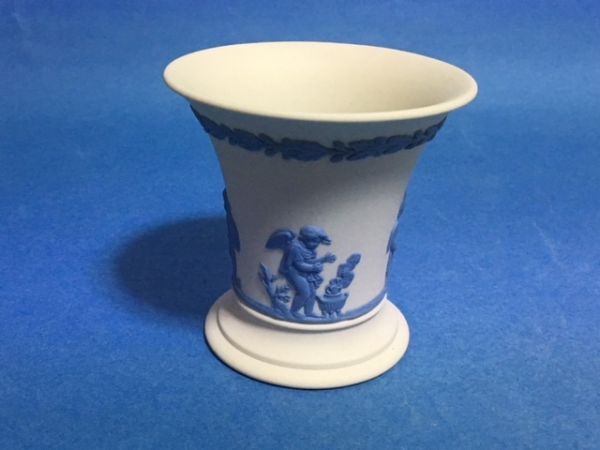 - ◎ウェッジウッド 青/白 逆転ジャスパー 綺麗な大口小型花瓶「天使」◎ko