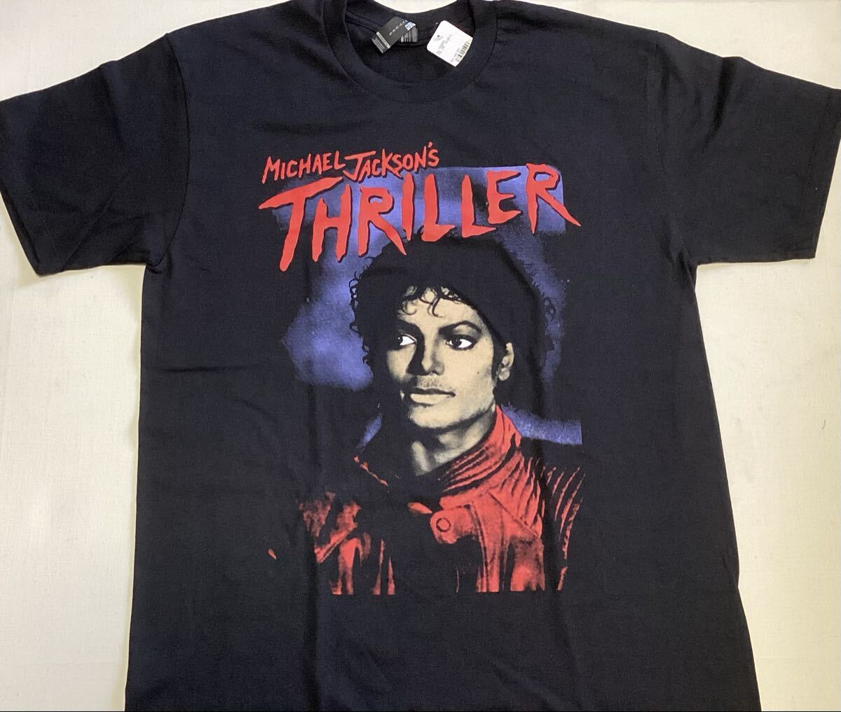 > 直輸入品◎Michael Jackson ◎Thriller◎マイケル・ジャクソン スリラー フォト Tシャツ ◎長期保管・未着用◎タグ付き●Lサイズ◎黒