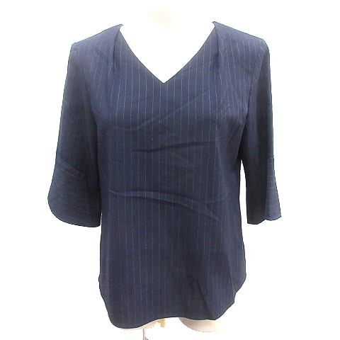 - クードシャンス CdeC COUP DE CHANCE シャツ ブラウス Vネック ストライプ 七分袖 38 M 紺 ネイビー /AU レディース